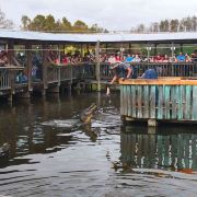 奥兰多鳄鱼乐园是一处结合动物展示和教育体验的野生动物保护区,这里生活着大量的鳄鱼、短吻鳄以及多种爬行动物。游客可以在非常近的距离观察这些动物的日常行为,也有机会与鳄鱼或蟒蛇合影,感受与野生动物互动的独特体验。园区每天安排有多场鳄鱼相关的表演,包含喂食、跳跃和训练示范,既紧张又精彩。适合喜欢动物探险的家庭或朋友结伴前往,整个参观过程既有趣味也富含自然知识。