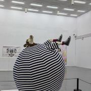 宋庄美术馆免费,不要证件,可直接进入参观,周一闭馆,5~9月10~20点、10~4月10~18点参观。美术馆有两层展厅,1个小型图书馆,1个售卖作品、图书、纪念品的商店,1个水吧,小朋友可以在水吧学习、创作。展厅内有直梯上到二楼,但里面的灯坏了,关门后伸手不见五指,着实吓了一跳。一层展厅有卫生间,不大,女厕一蹲一座,有洗手液、擦手纸。整体做到无障碍。