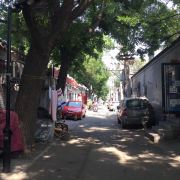 古街两边多为低矮整洁灰墙灰瓦的四合院民居,保存着老北京街巷的风貌。两旁槐树成行,绿冠浓荫与4座彩绘牌楼、大小宅院、庙宇相映成趣,清幽恬静,使得整条国子监街充满了古色古香的味道。