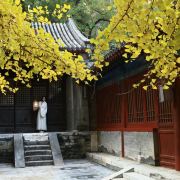 三进院正殿是无量寿佛殿,匾额书写“动静等观”是乾隆御笔。殿前北侧有一棵千年银杏树,长势旺盛。