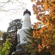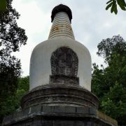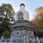 五进院是龙王堂,二层建筑,殿前正中有一庙巨大的白色伽陵舍利塔,是清雍正年间的大觉寺主持伽陵禅师的灵塔,他被雍正皇帝封为国师,佛学造诣很深。