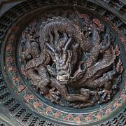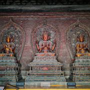 二进院正殿是大雄宝殿,也是大觉寺的主殿,匾额书写“来去无处”是乾隆御笔。殿内井口天花绘莲花瓣,藩龙藻井,这也是大觉寺唯一的一座藻井,雕刻非常精美。