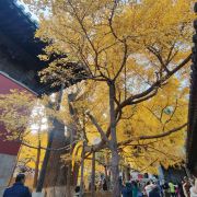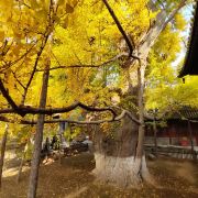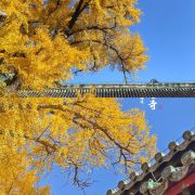 🌳环境:群山环抱中的大觉寺,林茂泉清,空气沁人心脾。古朴建筑红墙灰瓦,庄重尽显。秋季银杏成景,金黄叶片挂满枝头,随风舞动飘落,铺就金色地毯,与古寺建筑相互交融,构成绝美画卷。漫步树下或静坐庭院,能深切感受自然与人文的完美结合,宁静美好直抵心底。