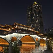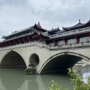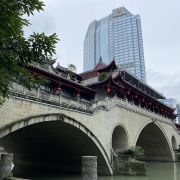 安顺廊桥,位于成都府河与南河交汇处的合江亭旁,这座桥有着悠久的历史,始建于元代,在马可·波罗的游记中,安顺廊桥是他印象中较为深刻的四座大桥之一。安顺廊桥曾经被洪水冲毁,2003年经过修复的安顺桥重新亮相。