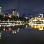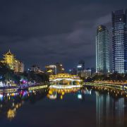 安顺廊桥至合江亭仅有300多米,又地处于市区2环内,两处景观夜景超赞,四周点点灯火和古建轮廓倒映河中非常漂亮,适合夜游。附近1公里左右还是成都酒吧汇聚地九眼桥,是成都夜生活的代言地。