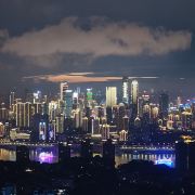 站在观景台上,远远望去,重庆渝中区万家灯火;环抱的两江,流光溢彩;飞跨的长桥,轮廓清晰;层见叠出,错落有致,色彩缤纷的整座城市,在夜空的衬托下美轮美奂,光彩夺目。