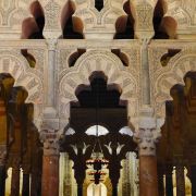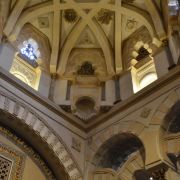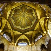 该寺始建于786年,由当时的阿拉伯摩尔人统治者阿拜德一世下令建造,主要由橘园中庭和寺本身组成。1236年后,该寺被天主教徒改作教堂,在原来的摩尔风格上又增加了哥特式和文艺复兴时的风格,前后共花了240年才完工。整座寺庙恍如一个混合了东西方多种建筑风格和宗教元素的空间,让人在穿梭于眼花缭乱的长廊时,仿佛走入了一个凝固了时空的奇妙领地。