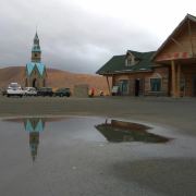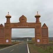 在小镇大门盘桓一会儿,看见恩和小镇对面的山上一片具有俄罗斯特色的夜总会(墓地),立即就想到,这里的民族政策是与内地完全不同的了。本来我想照个相片,司机小于说照墓地不吉利,于是我才罢手。