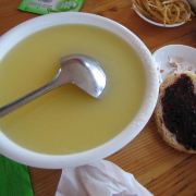 饮食也保留了俄式西餐,吃列巴,喝苏伯汤。