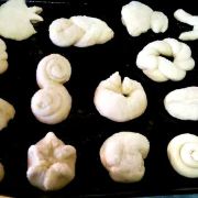 民族乡里有很多体验做列巴的地方,我们也去尝试了一下,一人一团发酵好的面团,随意揉捏。第二天去取回成果,虽然硬,很好吃呢!