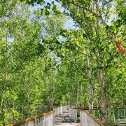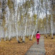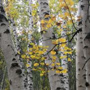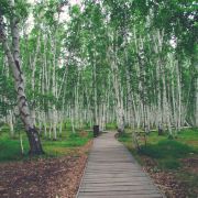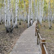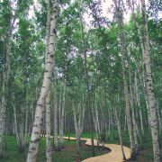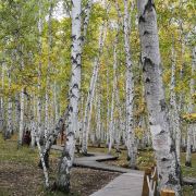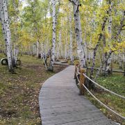 白桦林景区占地面积近1000公顷,是距市区较近的一片原始森林。白桦树是额尔古纳的市树,洁白的树干仿佛继承下了欧洲的血统,枝干上的稀疏黑色仿佛从天空落下的黑色雨点,风干在枝干上。