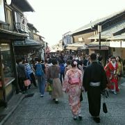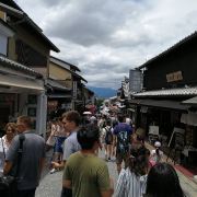 清水坂是清水寺门前的一条石板街,连接东大路通街道至清水寺,这条街车辆不得通行,道路两侧有很多出售清水烧瓷器、京烧点心的店铺,也少不了美味的京都小吃店,清水坂无疑成为了买纪念品、品京都小吃的首选之地。