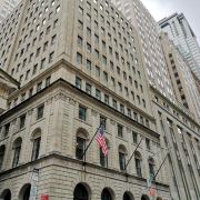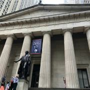 纽约证券交易所目前是世界较大的交易所,普通的灰色楼房在这片水泥森林中并不起眼,但它却是华尔街的主角。约有3000家来自全球各地的公司在此上市,全球市值高达15万亿美元。闻名的华尔街铜牛雕像原先也伫立在纽交所门口。