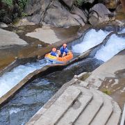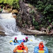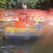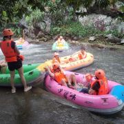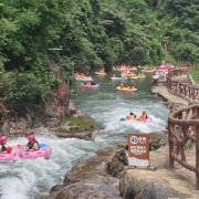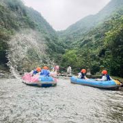 全程勇猛漂,漂流河道全程漂段,漂时约150分钟,游客若觉得猛士漂或勇士漂还不过瘾的话,可以选择全程勇猛漂,体验漂流的刺激挑战。大小落差有130多处,既可感受澎湃刺激而安全的漂流,又能在自然生态的水域中享受优良水质的清凉畅快,一路尖叫,感受漂流带来的乐趣。(提示1.3米以下55岁以上的游客请勿参与)