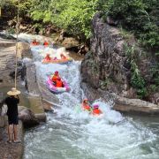 天然猛士漂,漂流河道的上游漂段,漂时约90分钟,原生态刺激河道。猛士漂的游客可体验悬崖转艇、猛龙穿洞、卷龙出寨、杜鹃映红、瀑布飞艇(单个落差12米)、青蛙跳潭等多个自然落差,猛士漂给游客带来的的刺激成为了漂流行业膜拜的经典。(提示1.3米以下55岁以上的游客请勿参与)