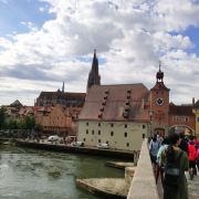 石桥曾经是雷根斯堡一座跨越多瑙河的桥梁,始建于1273年。至今已有800多年的历史,是中世纪非常重要的桥梁建筑之一。石桥长336米,宽8米,平均高度15米,共有16个桥洞,总重可达到10万吨。
