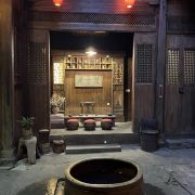 思溪是思溪延村景区内的其中一个村落,保存有不少明清徽商的豪宅院落。其中百寿花厅中由96个不同字体的“寿”字组成的罕见的“百寿图”,以及1987年版《聊斋》的主要外景地敬序堂,都是不容错过的精品。村口有一座木制的廊桥,名为“通济桥”。往村中走不远,过了振源堂就来到了百寿花厅。屋内96个字体各异的“寿”字刻在12扇落地长窗的窗格上,这种规模的百寿图镂雕在民间是非常罕见的,十分值得一看。屋檐下的牛腿也不是常见的狮子麒麟,而是闲雅的荷塘月色,伸嘴捕鱼的白鹭、盛开的荷花、肥硕的莲藕,别出心裁。村中气派也出名的商宅是“敬序堂”大屋,由庭院、正厅、后堂、花厅、厨房及花园组成。值得一提的是,敬序堂是《聊斋》的主要外景地,剧迷们可以在此回味剧中的经典场景。