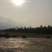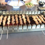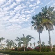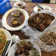 先上阳台,天气很热。但是这里面向沙滩,风景实在是美极了。拍照以后,来到一个餐厅。这个餐厅是烧烤的,我们点了个299元的套餐,又要了一盘水饺。这里的风景,真是快赶上马代了,我们拍了很多照片。烧烤有鸡翅、羊肉串、猪蹄子等等,最后剩了一饭盒,我们打包带走。