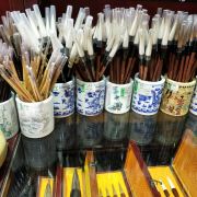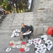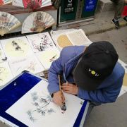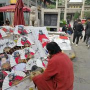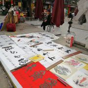 与国内其他的商业步行街相比,这里卖字画的店铺特别多,里面不仅有许多民间书画爱好者的作品,也有不少名家名作(但是也有不少赝品)。还有许多临街摆设的摊位,其实就是张书桌,主人就在此写字、作画,其中不乏高手。对于他们来说,售卖的同时,可能更享受与同门友人互相切磋技艺的过程。