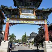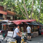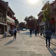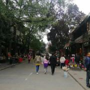当你从南大街拐到这条街上,会感到忽然间安静了下来,街道两旁是青一色仿古建筑,脚下是青石板铺路,处处都是高大的槐树。只有五百多米的街道上,集中了上百家店铺,销售着全国各大旅游景点都在卖的“纪念品”。