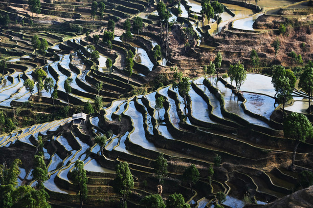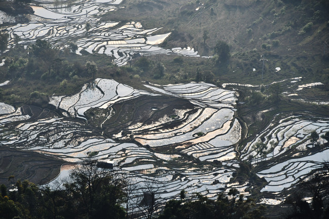 离开石屏,在我们出行的第六天(2月22日)中午来到红河县宝华乡落恐山下的撒玛坝万亩梯田景区,这里梯田总面积1.6万余亩,4300多级梯田,最低海拔600米,最高海拔1880米。据史料记载:红河县境内的梯田为宝华乡落恐土司第一代吴蚌颇率众开垦的哈尼梯田,至今已有700多年的悠久历史了,这里是整个红河哈尼梯田中史书记载最早的开垦地。撒玛坝梯田的壮观和神奇充分体现了人与自然的高度和谐、天人合一,集中展示了“森林—村寨—梯田—水系”四素共构的农业生态系统和各民族和睦相处的社会体系,是中国梯田文化的明珠和杰出代表,是农耕文明的典范。