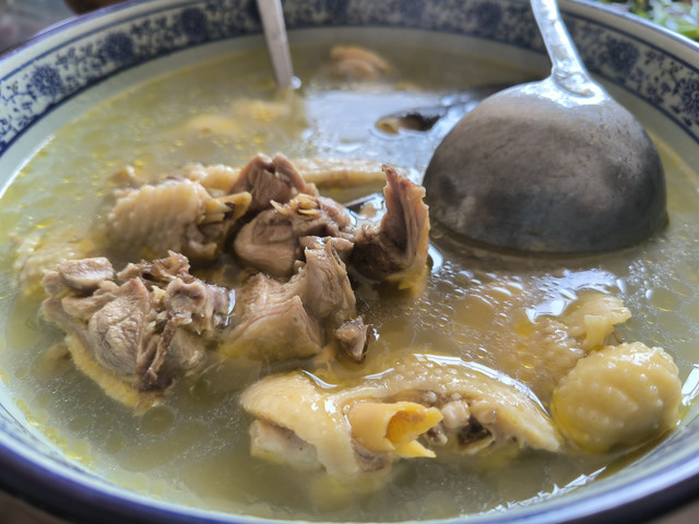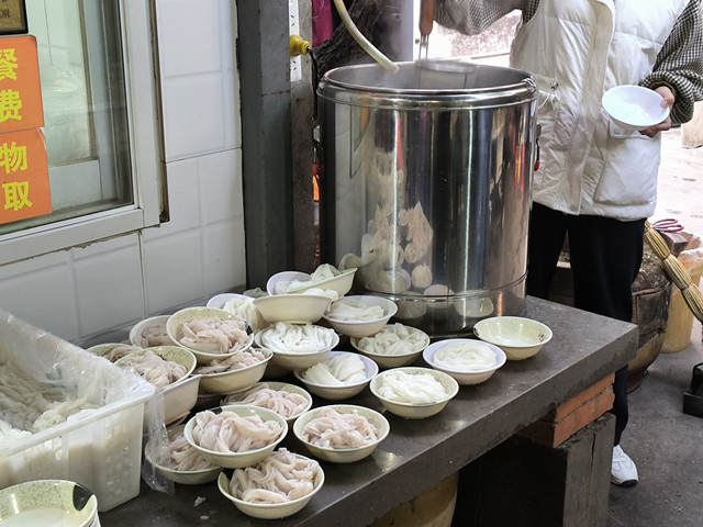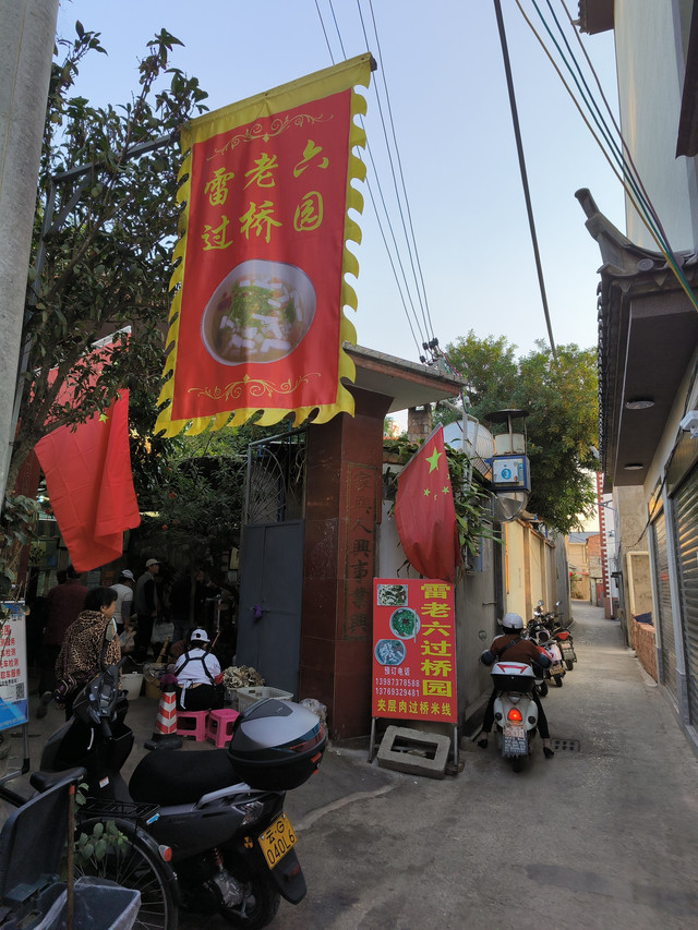 说到建水美食,朋友推荐了一家早餐店,我们在建水的两个早晨都开车来这里品尝米粉,有句话叫“酒香不怕巷子深”,这家店做到了,它藏在民居深巷里,但它的食客还真不少,而且当地人居多,可导航到广地宫小区东门,这家店在广地宫小区东门直对面的小巷子里,店名叫“雷老六过桥园”,它家的出品汤鲜料足、米线无限量供应。