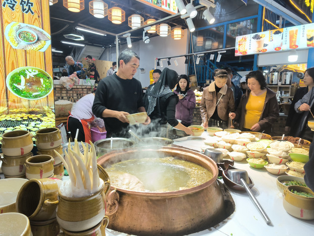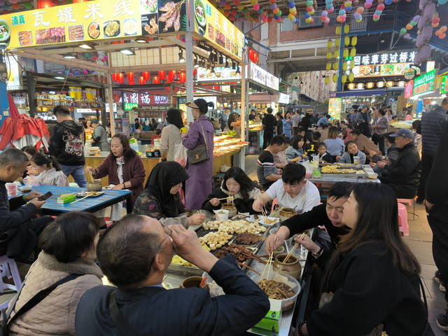 建水紫陶街是一条集美食,娱乐,地摊于一体的文化商业街。这绝对是吃货的天堂。从进入紫陶街的一刻起鼻子就能闻到诱人的香气,那是路边的烧烤摊飘来的,牛肉、鸡翅、肥肠、小龙虾、火腿肠、土豆、小瓜应有尽有,这时候当然不能少了豆腐,围着烧烤摊吃块喷香的烧豆腐才能体验到建水人的休闲与美食的结合, 牛汤锅自助米线馆前的大铜锅里飘出阵阵牛肉香味,许多食客站在摊子前把各种作料放进自己那碗牛肉汤里,米线无限量供应,没有吃不饱的说法。