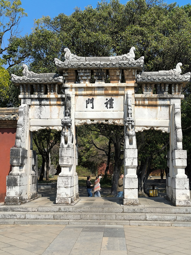 从临安府署步行6、7分钟就到建水文庙了。建水文庙,始建于元至元二十二年(1285年),已有七百多年的历史。经历代40多次扩建增修,占地面积已达114亩,其现存规模、建筑水平和保存完好程度,都仅次于曲阜孔庙和北京孔庙。 建水文庙完全依照曲阜孔庙的风格规制建造,采用南北中轴线对称的宫殿式,东西两侧对称布置多个单体建筑。原主要建筑包括一池、二殿、二庑、二堂、三阁、四门、五亭、五祠、八坊等共37个,现除杏坛、射圃、尊经阁、文星阁、敬一亭和斋亭被毁外,其余31个建筑都得到较为完好的保存。是云南乃至全国研究儒家文化及其辐射影响的重要历史文物建筑。2001年6月25日,建水文庙被中华人民共和国国务院公布为第五批全国重点文物保护单位。(门票38元,半票20元)