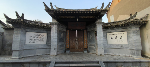 石屏风位于古城喻氏民宅内,是一万多年前形成的泉华,与地壳相连。长3.34米,宽0.48米,高2.78米。石体通孔大洞40余,小洞360,形态奇异,左似青龙,右如白虎。灵透瘦漏,巧夺天工,被石屏人视为珍宝。