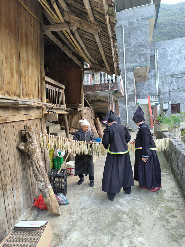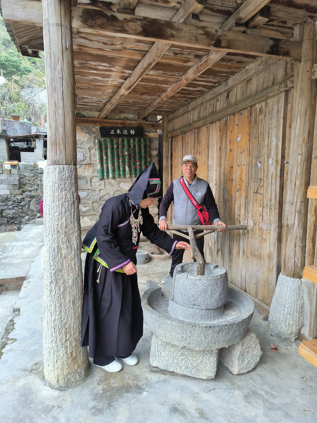 黑衣壮是壮族的一个支系,主要聚居在那坡县境内,共有9975户人家,5万多人,占那坡县壮族人口的32%,黑衣壮的生活形态在壮族个支系中保留得最古朴最传统,人类学专家称之为壮族的“活化石”。以黑为美是黑衣壮的传统:黑头巾、黑衣服、黑裤子、黑布鞋、黑里透红,原味无穷;黑衣壮的房屋为典型的干栏式建筑,别具一格。因此,2月18日早餐之后我们来到了吞力屯黑衣壮民俗旅游村,这个黑衣壮寨与其他黑衣壮寨的区别是这里有自治区文化厅投资80万元,支持建设的达文黑衣壮生态博物馆,居住着57户,370人,全屯均为黑衣壮。走进壮寨村民们都非常热情,家家户户都欢迎你到他们家里做客,村民们平时劳作都是穿和我们一样的现代汉服,到了壮族盛大的节日时,男女老少都精心打扮,吃毕腊肉、五色米饭后,扶老携幼,盛装从自家的干栏式木楼中走出。男的捆上红腰带,红黑相映,更添威武;女的戴上银首饰,银光闪闪,倍显妩媚;小孩焕然一新,跑来窜去,快乐无比。男女老少都能歌善舞,黑衣壮山寨里,家家产户都有织布机,在晒台上晾晒着用蓝靛染制的黑布,全屯散发着清郁的蓝靛香味。我们在村民的热情邀约下穿上黑衣壮的民族服装玩了一把村姑秀,玩得好尽兴、好开心啊!(免门票)