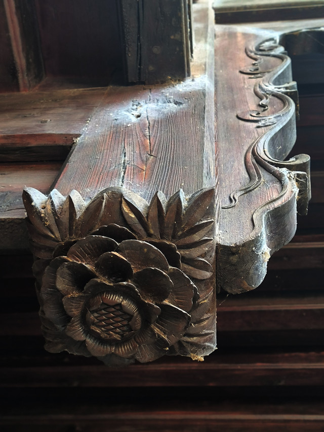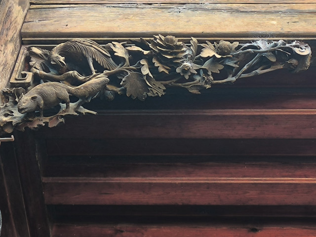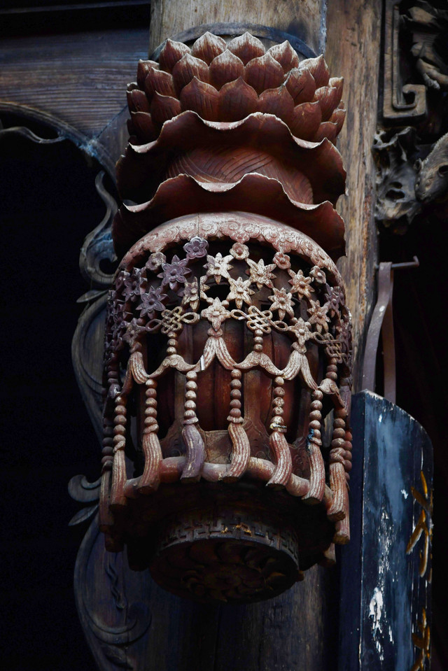 陈氏民居建于民国末期,整屋皆精造,木色庄重自然,其门、窗吊柱头,花枋雀替等木雕艺术令人叹为观止。屋檐口皆是牢固三重檐口花枋,中堂檐口装吊柱,柱头镂空雕灯笼造型,条纹清晰,通透连贯,造型别致,雍容华贵,气势非凡。