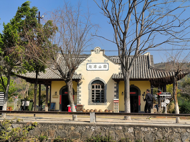 我朋友告诉我:到了建水一定要坐一次米轨小火车,用半天的时间穿越百年。于是乎,2月19日早上我们兴致勃勃地来了。建水小火车站非常有历史文化氛围,走进“个碧临屏铁路建水展厅”,里面有一些文物,可以让游客了解修筑米轨铁路的历程,缅怀历史、感悟文化。个(个旧)碧(碧色寨)石(石屏)铁路,是全国唯一寸轨铁路,两轨之间的距离为0.6米,个碧石铁路是由工商集资修筑的民营铁路,1915年5月开工,个碧临屏铁路始建于1915年,至今已有109年的历史,是中国最早的民营铁路之一。原为寸轨铁路,1970年经过改建成米轨。建水古城至团山米轨旅游观光列车开行的线路为建水临安站至团山站,整段铁路全程约12.82千米。目前,开通4个站点:临安站、双龙桥站、乡会桥站、团山站。站点虽不多,但每一站都有足够的历史沉淀。游客可以在小火车上领略到民国时期的纯中式建筑、纯法式建筑、中西合壁的站房、欣赏沿途乡村田园风光。淡季车票是100元,旺季车票是120元。我们想随心所欲的慢慢玩,于是自己开着车沿着铁路沿线慢慢欣赏了这个古城特有的风光。(免门票)