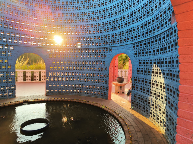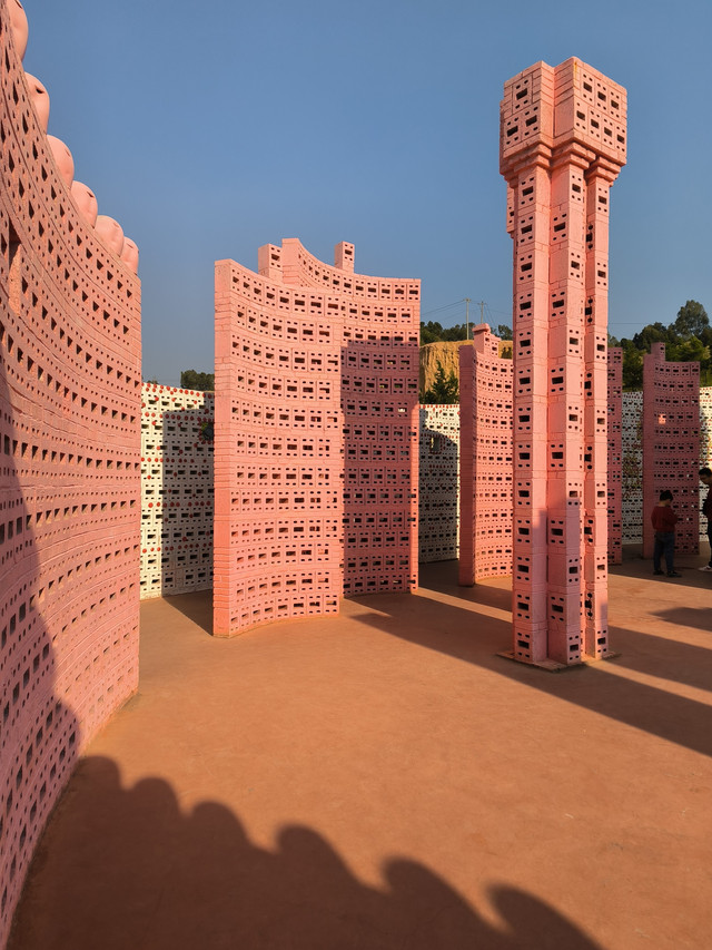 蚁工坊坐落于国家级历史文化名城——建水县城五龙湖城市公园旁,这里距离建水古城5公里左右,是利用原来的一处废砖厂改造后建成的,景区布置以蚂蚁为故事线 、几何图形、 艳丽色彩 、百变光线是这里的主要元素, 这里仿佛是一座用空心砖建造的大迷宫。是一个以陶文化研发、生产和体验为主题,汇吃住娱、游赏购多业态,重观赏艺术、认知艺术、融入艺术体验的艺术园区。据介绍,这里是一位云南怪才艺术家——罗旭投资兴建的。罗旭于1996年在昆明小喜村收费站周边建了一个装满自己作品的“土著巢”,2016年在弥勒东风小镇设计挥建起一片红砖雕塑城堡——网红景点“东风韵”,2019年在建水又设计建了一个网红景点“蚁工坊”。蚁工坊是一个七彩的世界,红橙黄绿青蓝紫的色彩拚接在一起,是一个拍照非常出片的地方。(门票:30元)