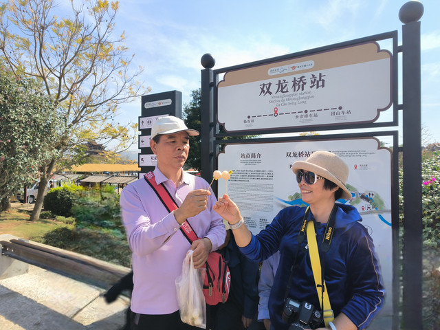 双龙桥车站:以景点“双龙桥”命名的站台。双龙桥是云南省著名古迹之一,已列入我国造桥史册。清乾隆年间先建三孔,道光年间有建十四孔与之相连,因此俗称“十七孔桥”。它造型奇巧,是我国现存的优秀古桥之一。