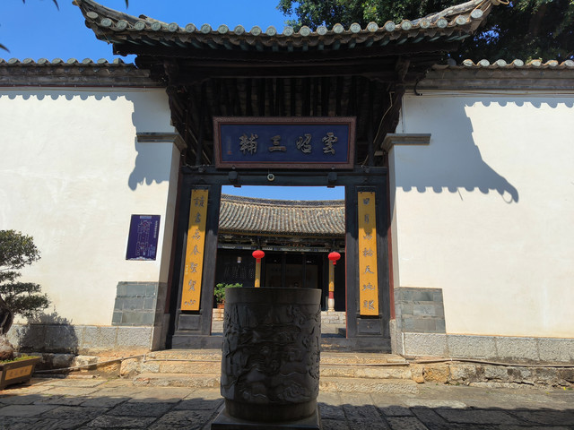 考棚坐北朝南,面宽40余米,纵深150米,占地6000平方米,建筑面积约3100平方米。房舍整齐对称,共百余间。整个建筑以甬道为中轴线,形成六进院落。一进院为鼓厅、号门,二进院为龙门,三进院设有东西文场,四进院为校士馆,五进院为戒慎堂,六进院为学政公署。现存建筑保留完好,是研究中国西南古代科举制度的绝好实物遗存,1993年云南省人民政府公布为第四批重点文物保护单位。(门票:18元,半价:10元)