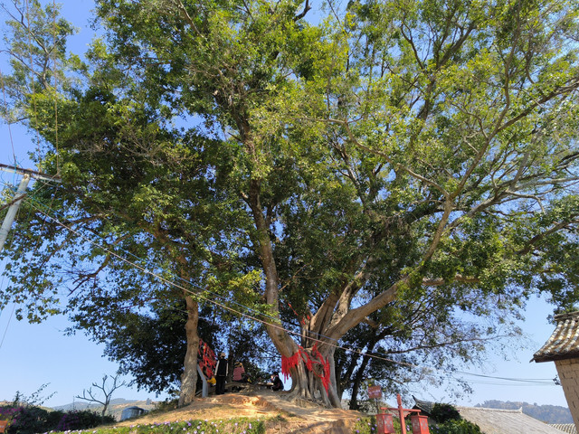 大榕树约种于清光绪十六年(1890年)。是张家花园主人在建盖花园祠堂时,为化解煞气、推旺运势、荫庇家人而种,后因团山村涌现出了一批千总、营管带、将军、贡生、太学生、州学秀才等能人志士,于是村民就把这棵万年青称为了“风水树”