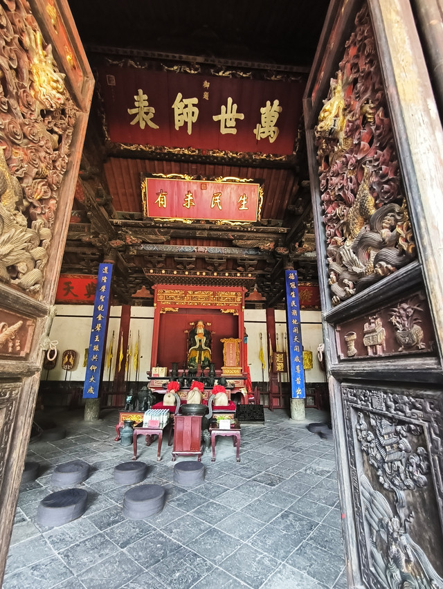 先师殿,是文庙的中心殿堂,面阔16.73米,进深10.9米,占地面积182平方米,单檐歇山顶,殿顶原竖琉璃宝瓶和兽吻,青瓦铺顶。为五开间三进间,抬梁式与穿斗式相结合。用斗拱12攒,其中角科斗拱4攒,平身科斗拱4攒,柱头科斗拱4攒,整座建筑用柱子24棵,其中檐柱6棵,金柱6棵。柱础为青石,直径60厘米,高29厘米,上有浮雕双龙护宝图。