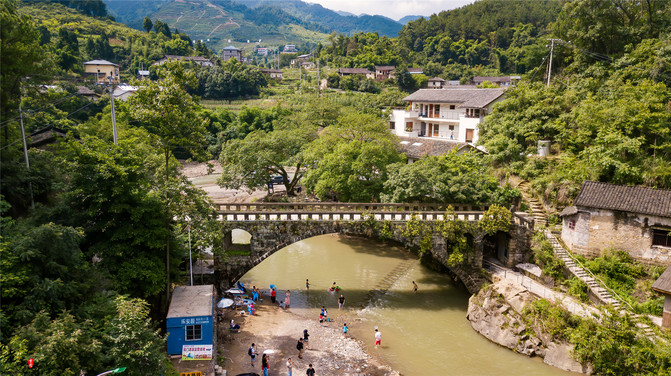 4.元门古桥,位于胜天湖村元门。因为重庆独特的地貌地势,吸引着许多电影团队到此取景。重庆之所以有网红城市一说,很大程度也是靠着当红电影助力。而元门古桥,虽然远离市区,但也是在大屏幕露过脸的。《我的女友是机器人》包贝尔、辛芷蕾主演的电影,就在此取景。这里河水清亮,而且温度较低。是许多游客玩水,野炊的好地方。而且古桥对岸还有一处民宿,环境也是清幽的紧,一副世外桃源之像。