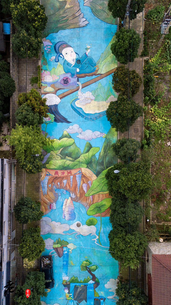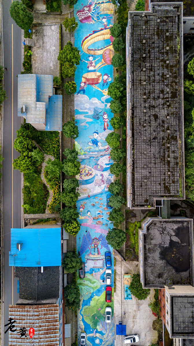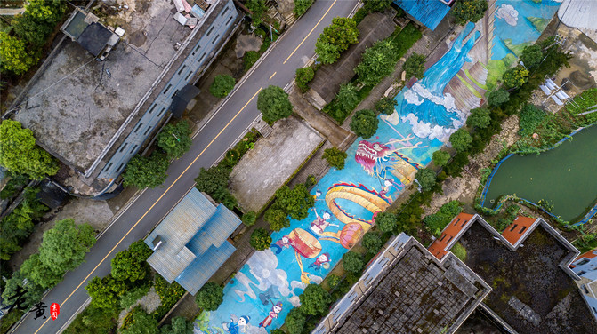 5.小塘村彩绘一条街,位于金刀峡镇小塘村砖马桥。这也是最近金刀峡镇最网红的一处打卡地了。全长约400米的道理,全部用彩绘铺满,让游客行走在画卷之上。而这长篇图画,内容主要是唐门彩扎、偏岩古镇等金刀峡镇具有特色的景点、物品、人物等。不仅美化了街区,同时也展现了金刀峡镇的全面风貌。这样的精心巨作,在网上也引起了强烈反响,势必成为游客争相打卡的网红街区。