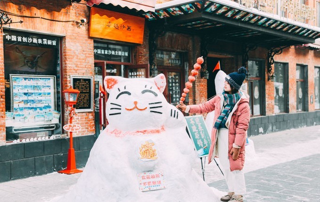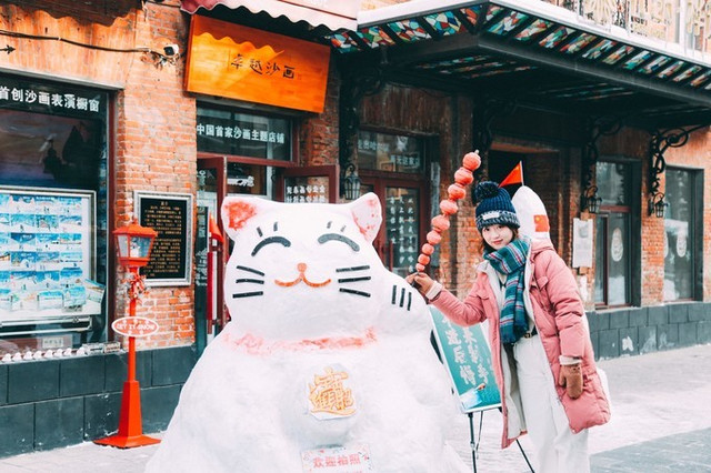 哈尔滨 老道外,大大的雪人和冰糖葫芦。
