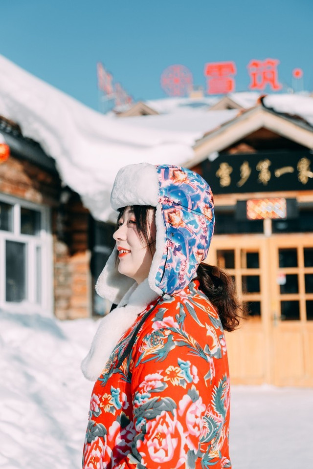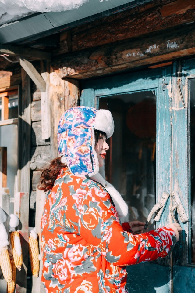 之所以叫这个名字,据说这里真的是 雪乡 的第一家家庭旅馆,如今规模还是挺大的,入住的话免费提供不少物品,像我身上穿着的 东北 大花袄就也是这里提供的