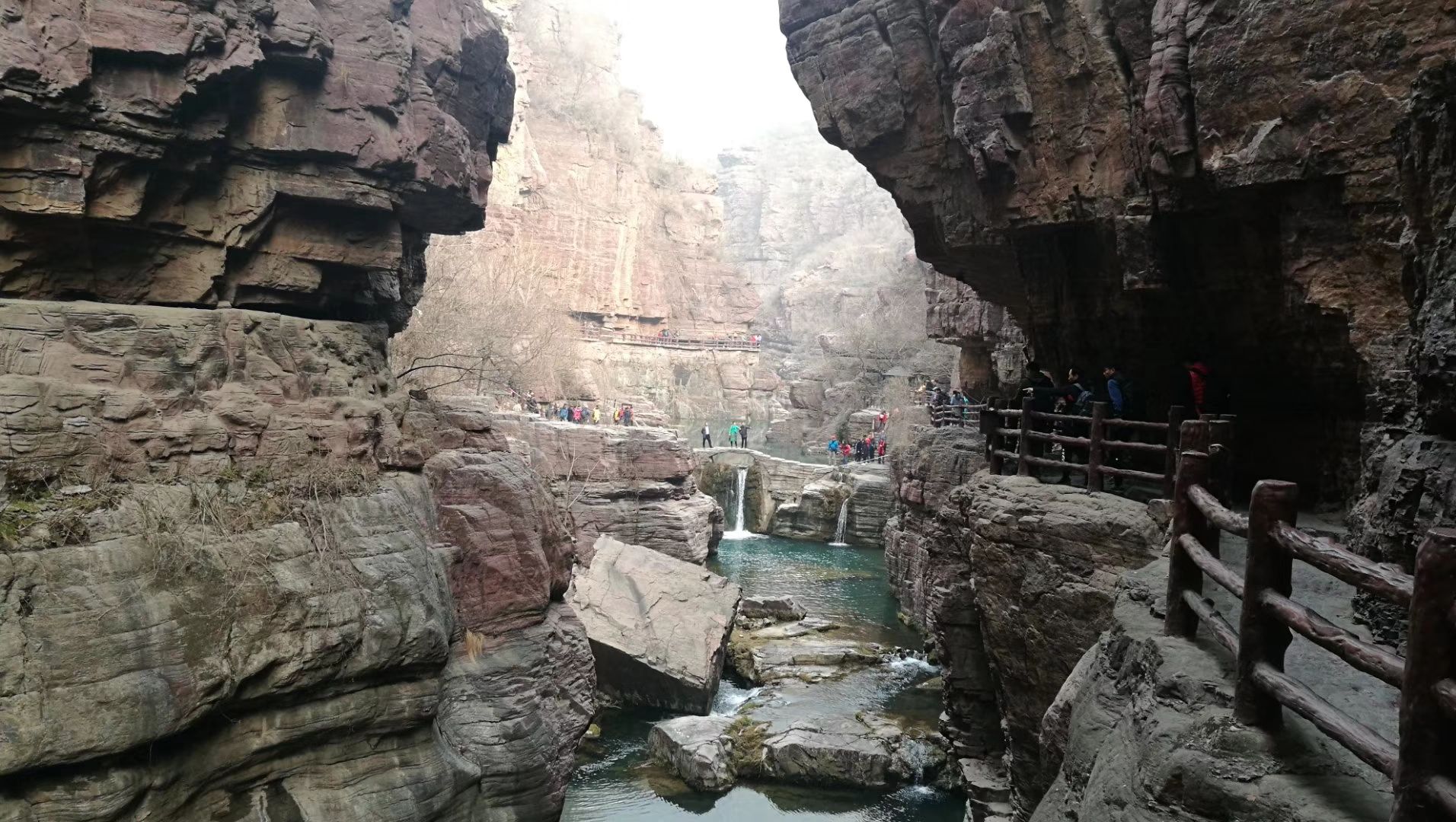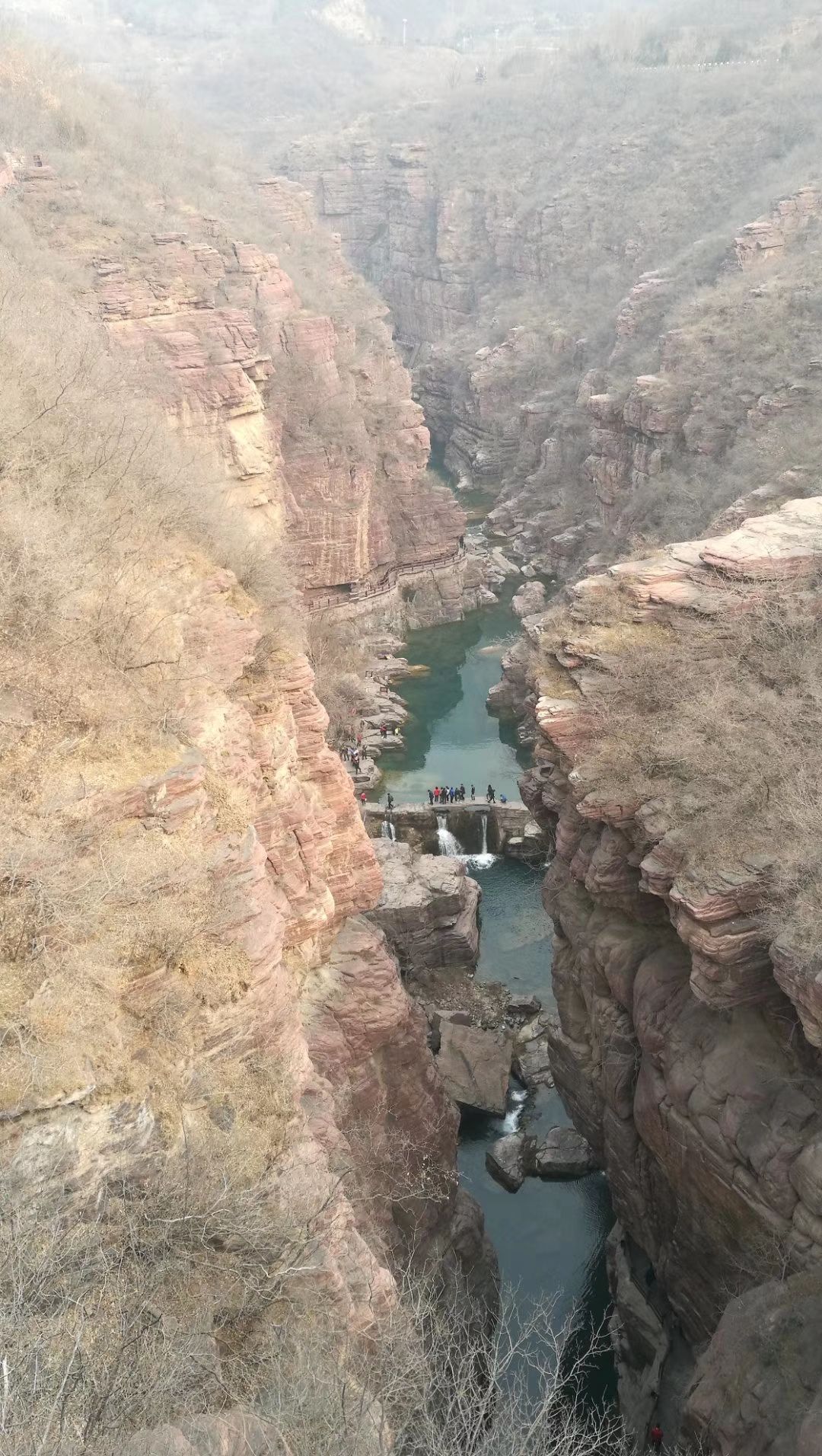 台阶不少,红石峡在山谷里,进去需要往下爬,然后基本上是平行游览峡谷,出谷需要往上爬到大坝上,还是有点累的,但比茱萸峰好太多了。