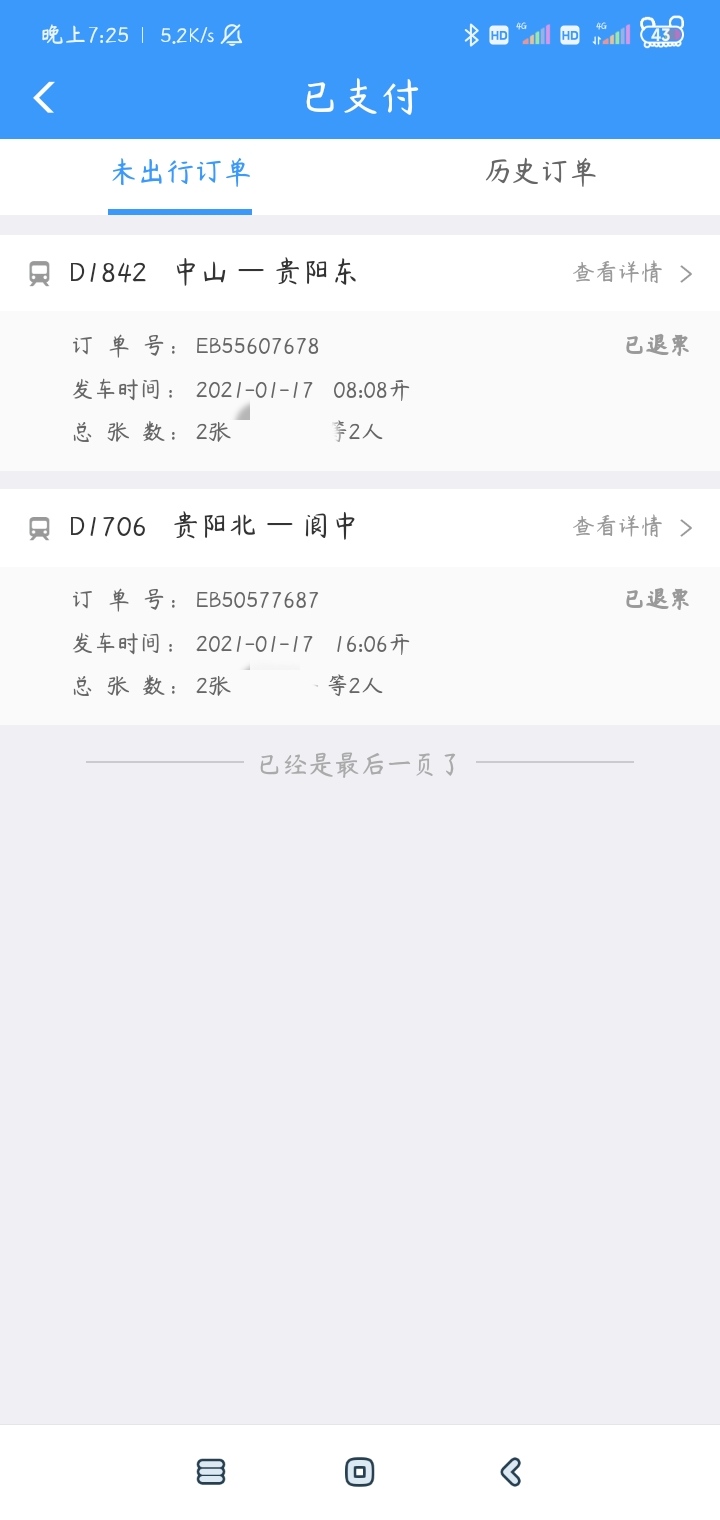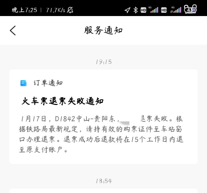 没有打印纸票,所以我的车票现在已经报废了对吗?那我现在就是等退款了吧