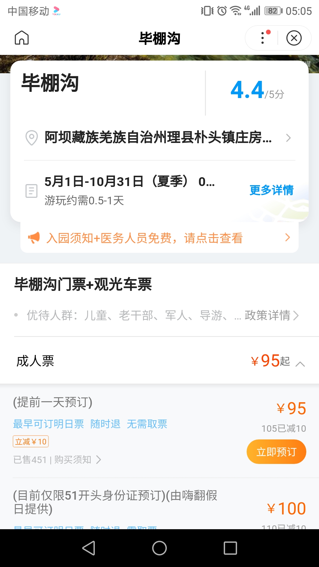 3. 朴头乡住宿每天200~250元,沟口住宿每天100~150元(条件一般),毕棚沟景区门票+观光车票95元(当天有效)。