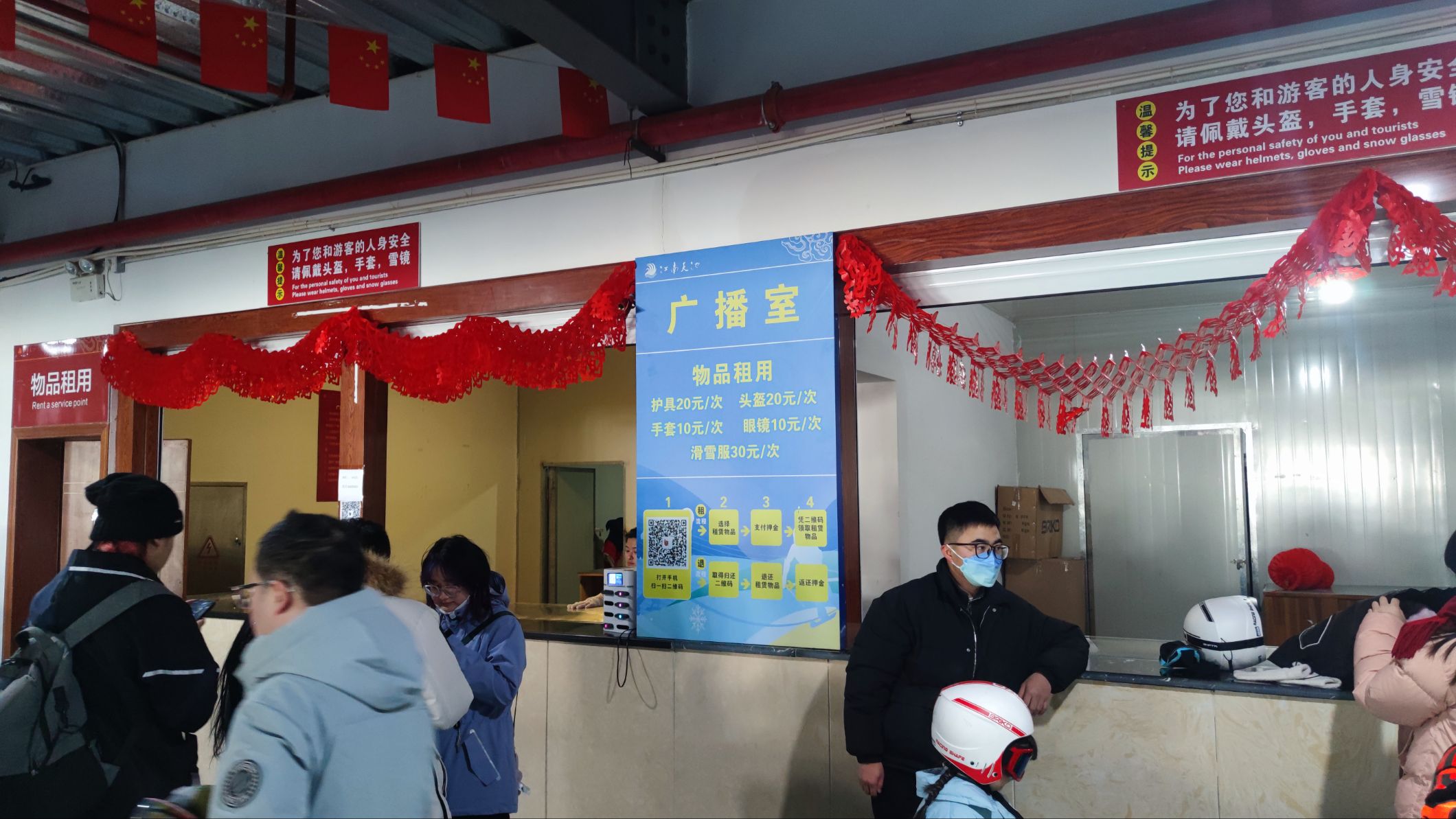 雪镜也有租,雪服有不同颜色可以选择。