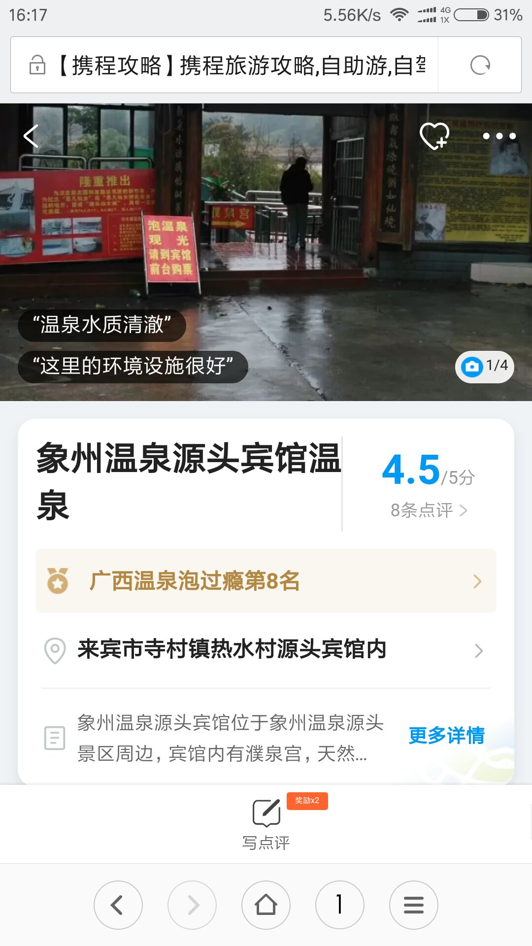 象州温泉源头宾馆位于象州温泉源头,宾馆内有濮泉宫,天然的温泉大浴池可同时容纳上百人泡汤,源头天然烫蛋池40分钟可以烫熟鸡蛋、鹌鹑蛋,且特别细嫩鲜滑,香甜可口,堪称中华一绝。象州温泉,旧名濮水名泉,当地群众传统俗称“热水”,温泉之水来自于离地面几百米深处的热岩,泉水清澈透明。目前,温泉度假区已建有象州温泉旅游度假村,温泉宾馆、矿泉水厂、温泉浴疗室、休闲度假山庄、娱乐性游泳池、综合娱乐中心等旅游设施。