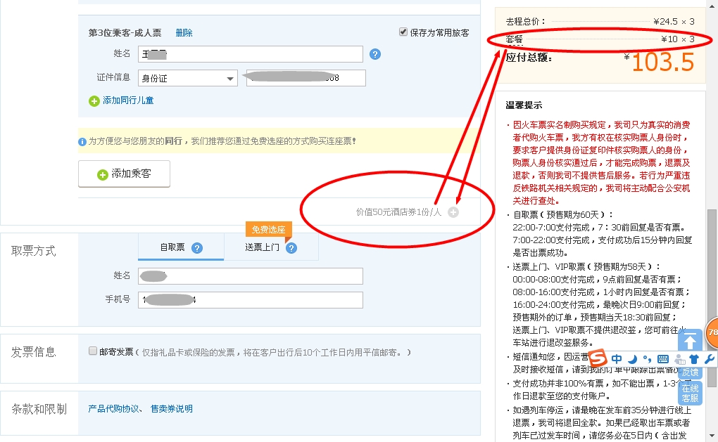 是说携程吗 --- 携程页面会显示一些套餐费用,比如保险,比如优惠券,比如自选座,等等。