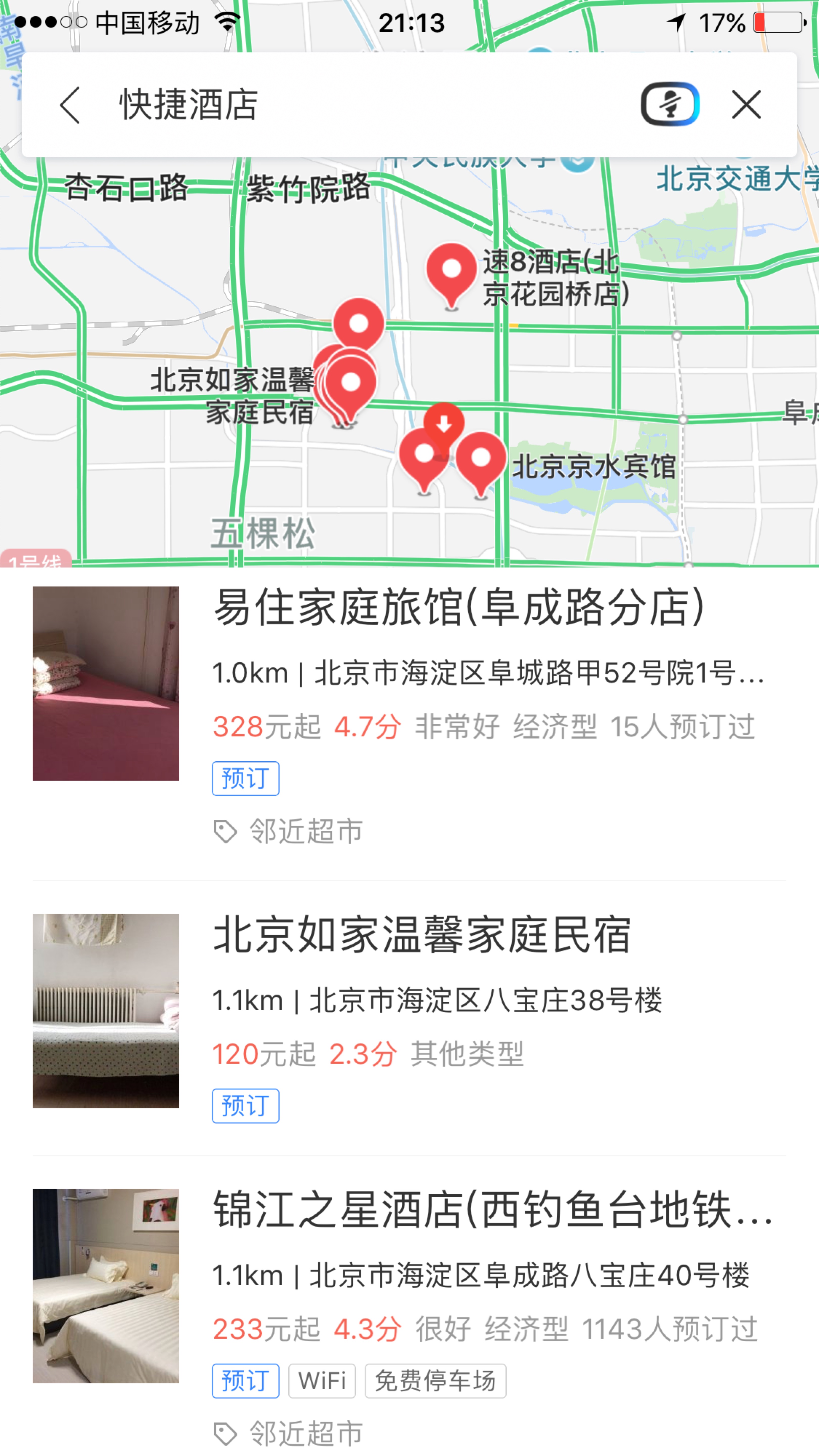 北京空军总医院附近的快捷酒店有不少,按照由近到远,提供了几处供参考。