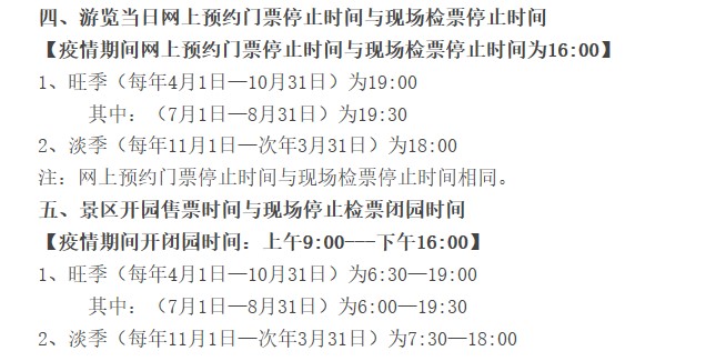 【疫情期间网上预约门票停止时间与现场检票停止时间为16:00】