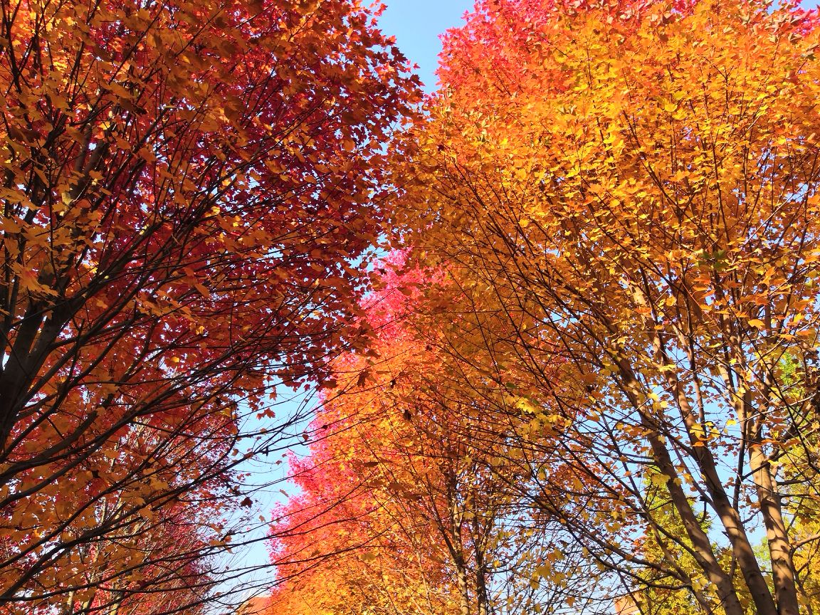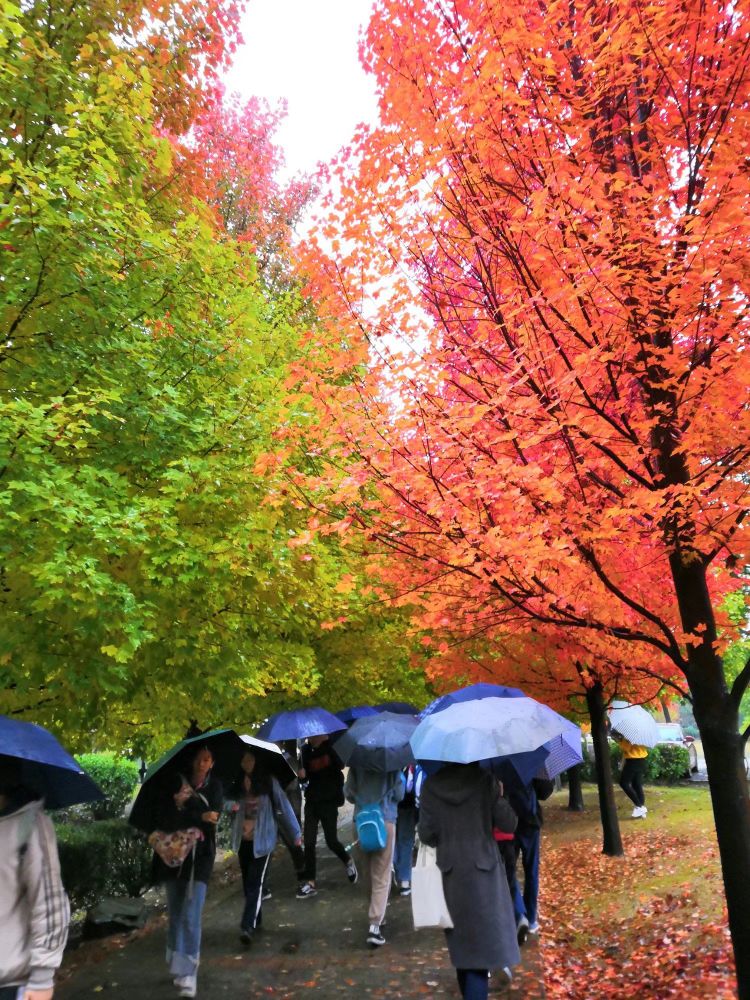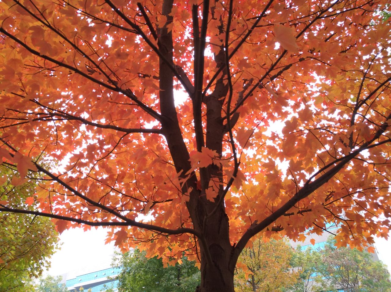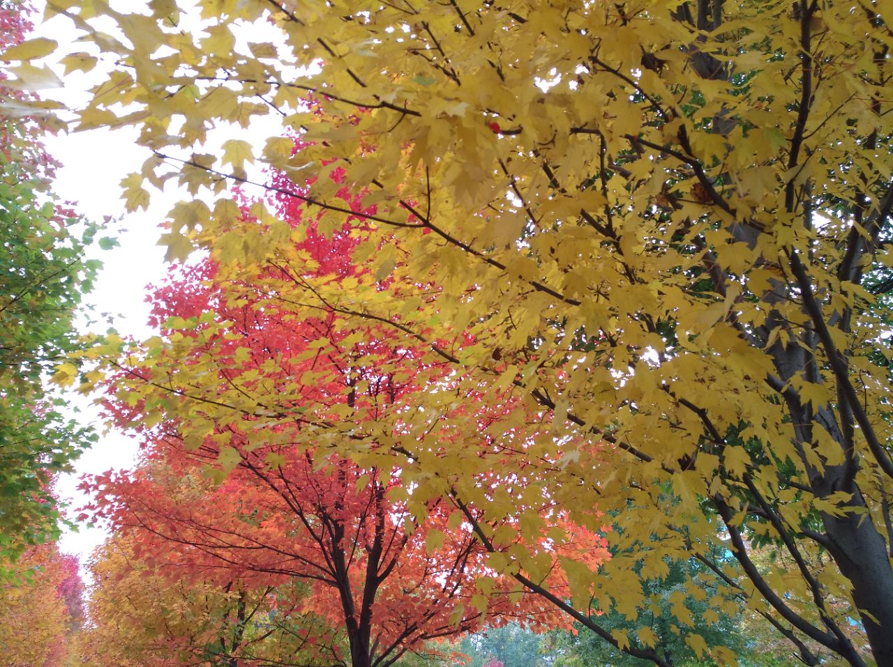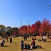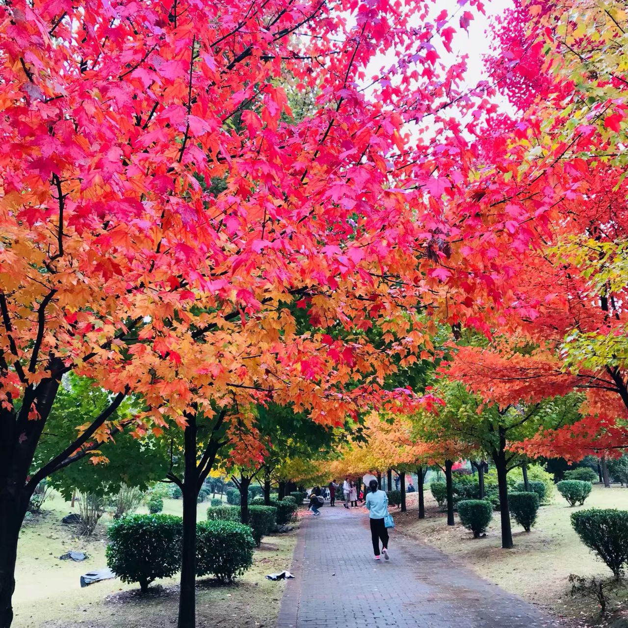 烈士公园有近百株枫香,目前枫叶红了30[%] 左右, 公园里的枫树主要成片地分布在烈士塔周边及南门入口水塘四周,园内其它各处也有零星分布。